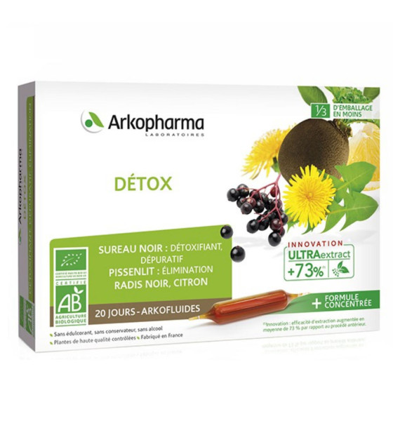 Arkofluides Détox Bio est un complément alimentaire proposé par le laboratoire Arkopharma. Ce laboratoire Français est le leader européen des compléments alimentaires de phytothérapie.