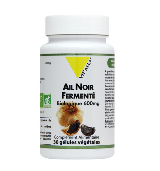 | Ail noir fermenté (Allium sativum) – bulbe – Extrait standardisé 4:1(Equivaut à 2,4g d’ail) – Biologique1 |