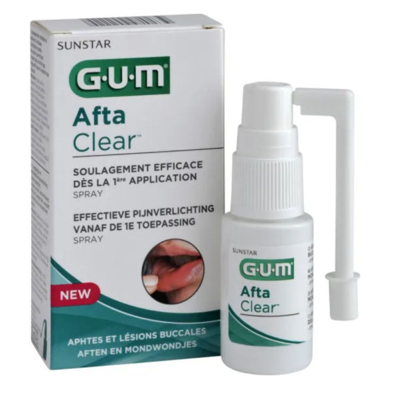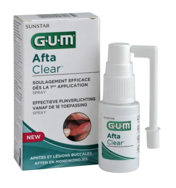 GUM Afta Clear Spray 15 ml est un traitement spécialement conçu pour soulager efficacement les aphtes et lésions buccales.