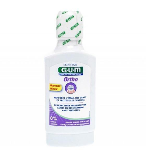 Le bain de bouche Gum Ortho est conçu pour réduire la formation de la plaque dentaire et éviter les caries.