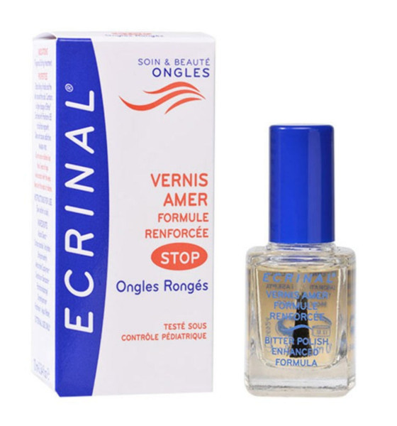 Ecrinal Vernis Amer Stop Ongles Rongés Formule Renforcée 10 ml est un vernis spécialement conçu pour les ongles rongés, il convient aux enfants à partir de 3 ans.