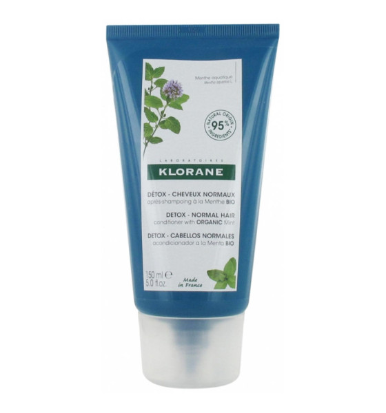 Klorane Détox - Cheveux Normaux Après-Shampoing à la Menthe Bio 150 ml est un après-shampoing à la formule biodégradable, qui démêle instantanément et redonne éclat aux longueurs ternes.