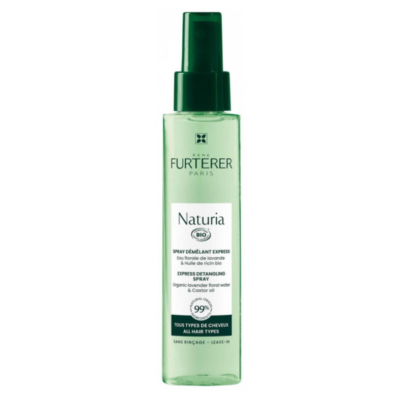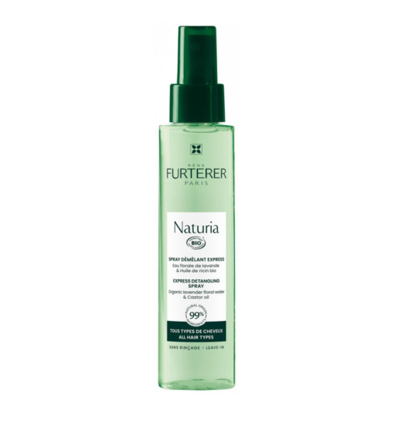 René Furterer Naturia Spray Démêlant Express Bio 200 ml est un soin formulé pour faciliter le coiffage et apporter brillance à la chevelure en un seul geste. Il convient à tous types de cheveux à partir de l'âge de 3 ans.