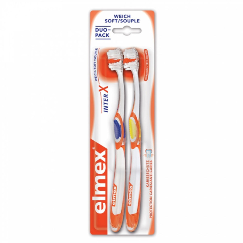 Les brosses à dents elmex ANTI-CARIES se caractérisent par leur profil en X. L'implantation des filaments a été optimisée par une série de test in vitro afin d'obtenir le meilleur profil de brins.