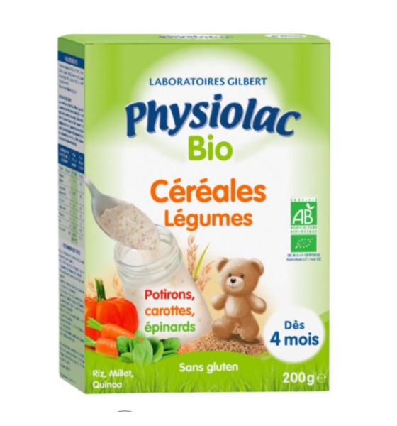 Les céréales infantiles Physiolac BIO Légumes peuvent être utilisées sur conseil de votre pharmacien ou de votre médecin dès 4 mois**. Ce produit doit être utilisé en complément et n’est pas destiné à remplacer le lait maternel. Avec les céréales infantiles Physiolac BIO Légumes, les Laboratoires Gilbert offrent aux bébés leurs premières céréales pour une première étape de la diversification alimentaire réussie et dans le respect de l’environnement.