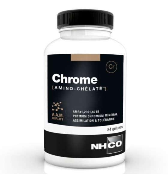Nhco Chrome Amino Chelaté 84 Gélules : Le picolinate de chrome résulte de l’association entre le chrome et l’acide picolinique (dérivé du L-Tryptophane) qui confère une meilleure absorption et participe au métabolisme normal des macronutriments, notamment celui des glucides. Les études cliniques les plus récentes démontrent l'efficacité du chrome dans la régulation du métabolisme des glucides et des lipides au dosage de 200 μg par jour. Il est aussi nécessaire à utilisation des acides gras, des glucides et des protéines de notre alimentation. Le chrome contribue également au maintien d’une glycémie normale