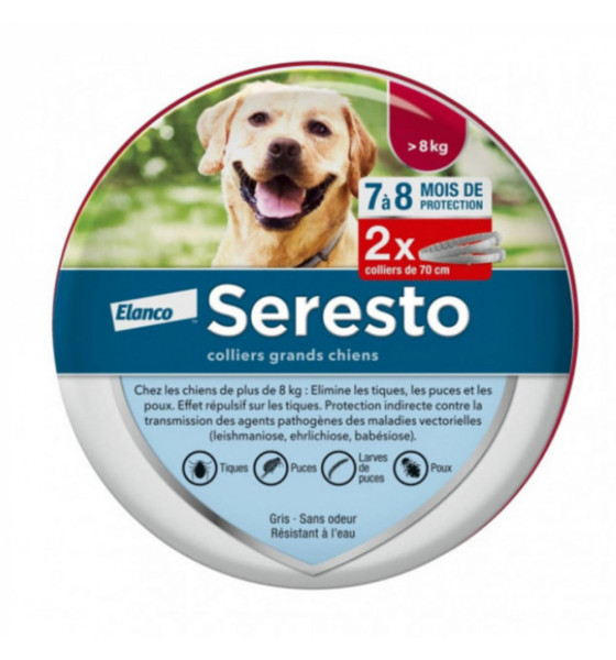 Le Collier Grands Chiens Bayer Seresto est un collier antiparasitaire destiné aux chiens de plus de 8 kg.
