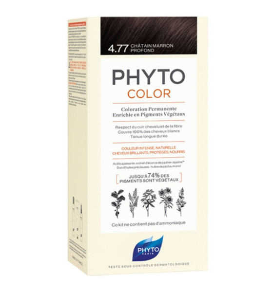 La Coloration Permanente 4,77 de Phyto couvre 100% de vos cheveux blancs. Elle permet de vous offrir une couleur blond très clair intense et naturelle sans abîmer votre cuir chevelu.