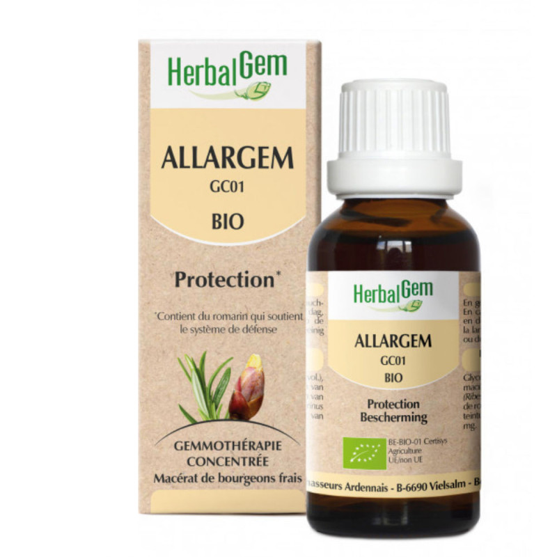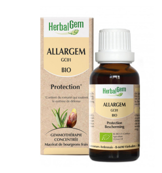 HerbalGem Bio Allargem 30 ml contribue à rééquilibrer le terrain allergique. Le complexe protection à base de bourgeons de cassis, de jeunes pousses de romarin et de propolis favorise le soulagement en cas de désagréments liés à des phénomènes allergiques.