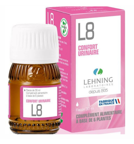 Lehning L8 solution buvable est un complément alimentaire à base de 6 plantes pour le confort urinaire.