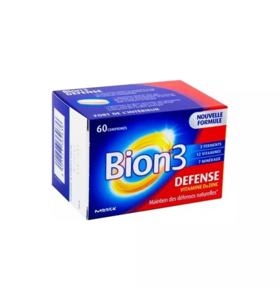 Le rythme de vie moderne peut mettre l'organisme à rude épreuve. Bion3 Défense est destiné aux adultes qui souhaitent maintenir leurs défenses naturelles et réduire leur fatigue, notamment en période de baisse de forme (et aux changements de saison), grâce à la vitamine D et au zinc qui contribuent au fonctionnement normal du système immunitaire et au fer qui aide à réduire la fatigue.
