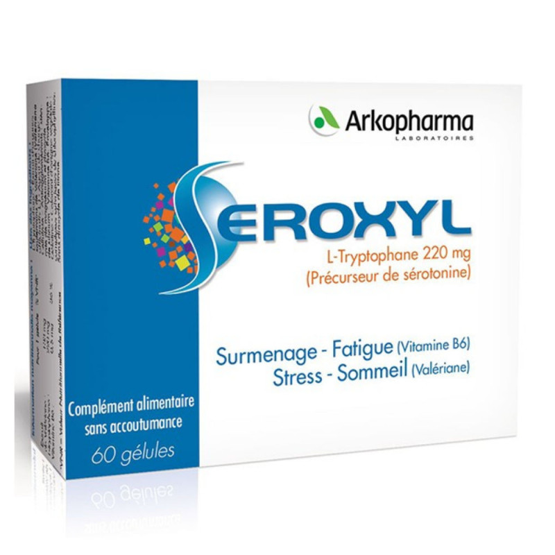 Arkopharma Seroxyl Surmenage Fatigue Stress Sommeil 60 Gélules est un complément alimentaire à base de valériane, L-tryptophane et vitamine B6. Il est formulé pour faire face aux moments de stress passager :