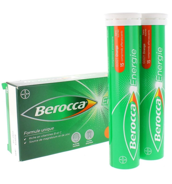 Berocca Energie est un complément alimentaire avec édulcorants, à utiliser en complément d'une alimentation variée et équilibrée, et d'un mode de vie sain.
