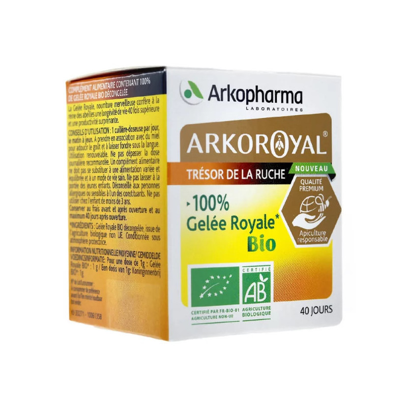 Arkoroyal® 100 % Gelée Royale BIO, en programme de 40 jours, est conseillé à ceux qui souhaitent la gelée royale sous sa forme la plus pure !