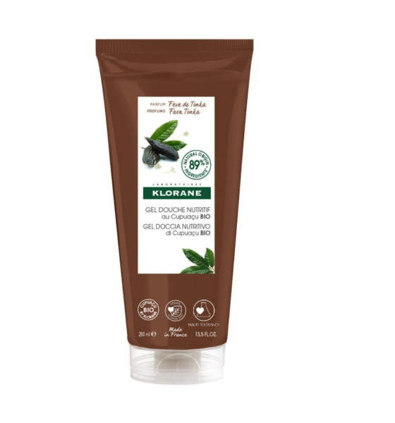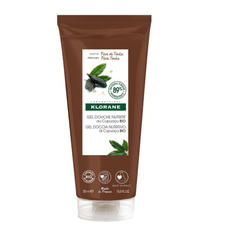Klorane Gel Douche Nutritif au Cupuaçu Bio Fève de Tonka 200 ml est un gel douche à la formule biodégradable et au pH physiologique qui nettoie délicatement et nourrit tous types de peaux. Il offre un parfum délassant aux notes de fleur d'osmanthus, de clémentine et de fève de tonka.