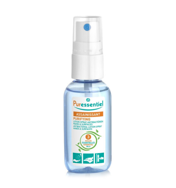 Cette lotion hydroalcoolique aux 3 huiles essentielles désinfecte les mains et les objets usuels sans eau, sans savon et sans rinçage.