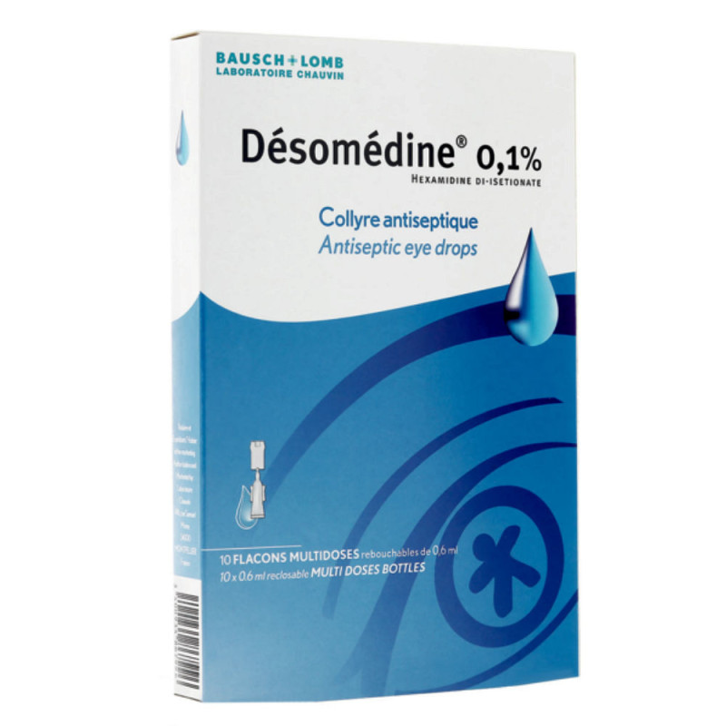 Adressez-vous à votre médecin ou pharmacien avant d’utiliser DESOMEDINE 0,1 %, collyre en solution.