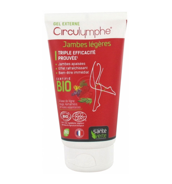Santé Verte Circulymphe Bio 150 ml est un gel externe qui agit sur les jambes fatiguées pour un bien-être immédiat grâce à l'action de son complexe d'actifs et à l'effet stimulant du massage sur la circulation.