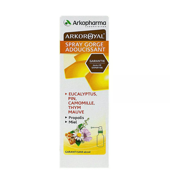 Arkopharma Arko Royal Spray Adoucissant pour la Gorge 30 ml est un complément alimentaire à base de plantes, de propolis et de miel.
