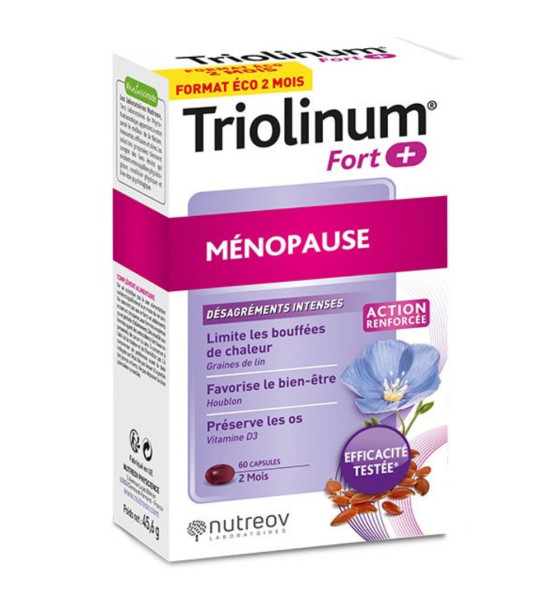 Nutreov Triolinum Fort 60 Capsules est un complément alimentaire formulé pour réduire les manifestations intenses de la ménopause.