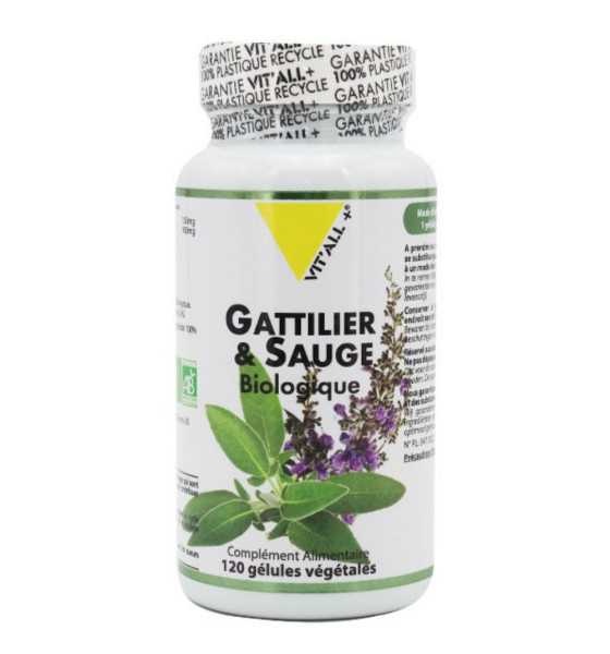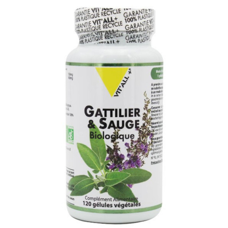 VIT'ALL + Gattilier & Sauge 120 gélules Vitall+ est un complément alimentaire pour le bien-être féminin, aider contre les bouffées de chaleur et sera d'une grande aide pour être en équilibre pendant une période de votre vie qui peut être délicat.