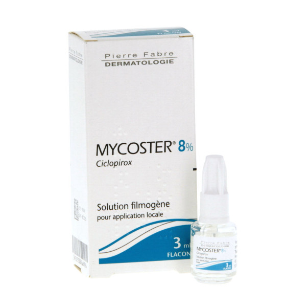 MYCOSTER 8 %, solution filmogène pour application locale en flacon est destiné au traitement des mycoses (onychomycoses) des ongles des pieds et des mains. La substance active, le ciclopirox, pénètre l’ongle et détruit les champignons.