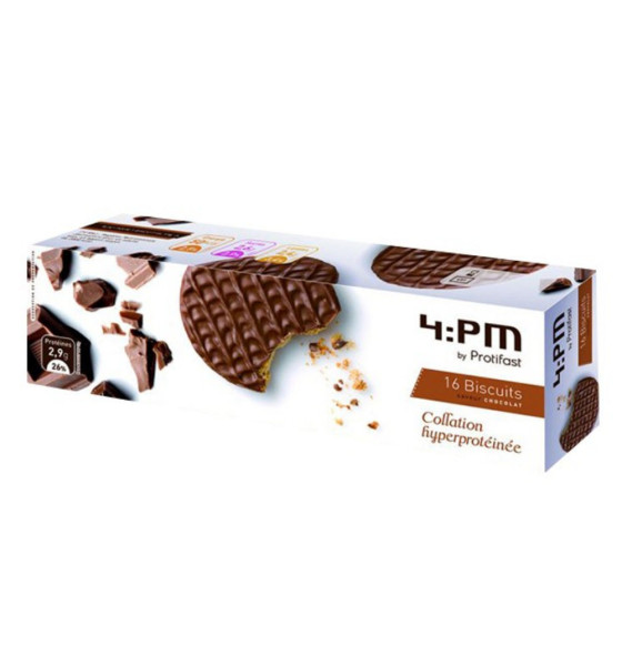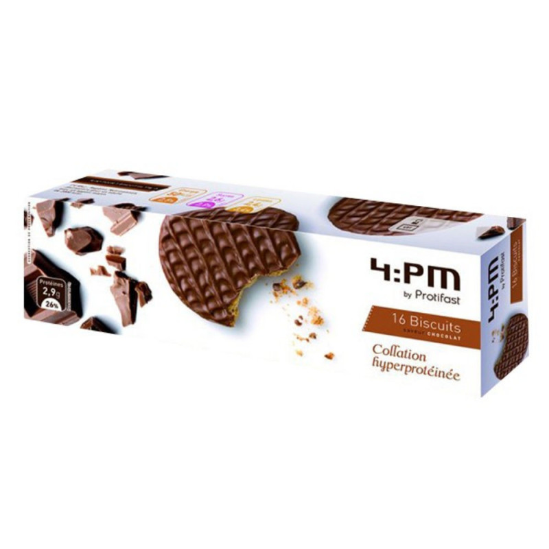 Biscuits protéinés nappés au chocolat noir pour en-cas diététique hypocalorique.