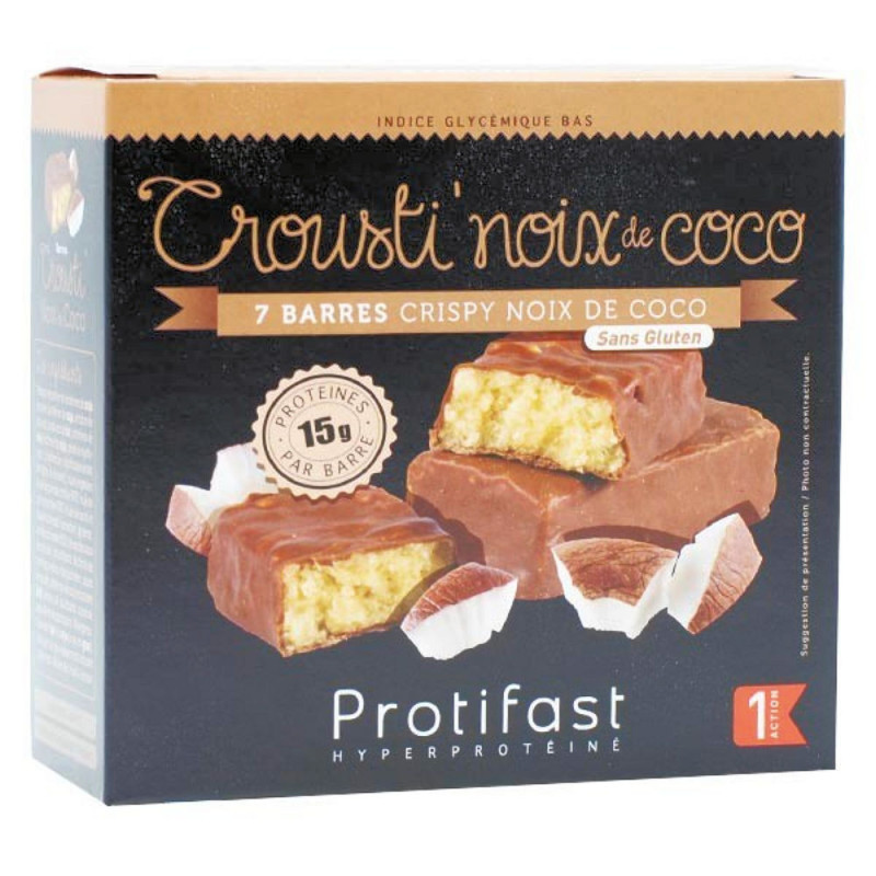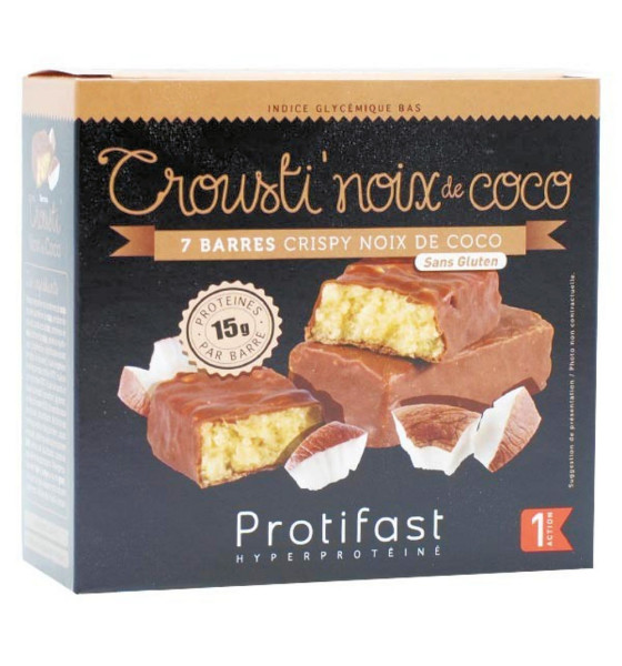 Protifast En-Cas Hyperprotéiné Crousti' Noix de Coco 7 barres est une barre croustillante et savoureuse Protifast, idéale pour les sportifs ou les personnes qui font attention à leur poids. Les barres Protifast sont :