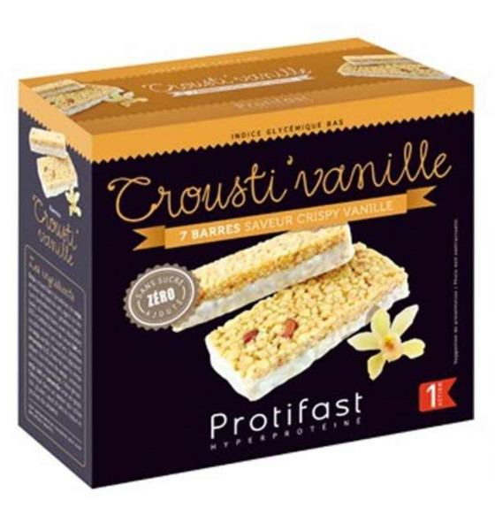 Protifast Barre Crousti'Vanille 7 barres constitue un en-cas hyperprotéiné sans sucres ajoutés.Cette barre croustillante et savoureuse Protifast est idéale pour les sportifs ou les personnes qui font attention à leur poids. Les barres Protifast sont :