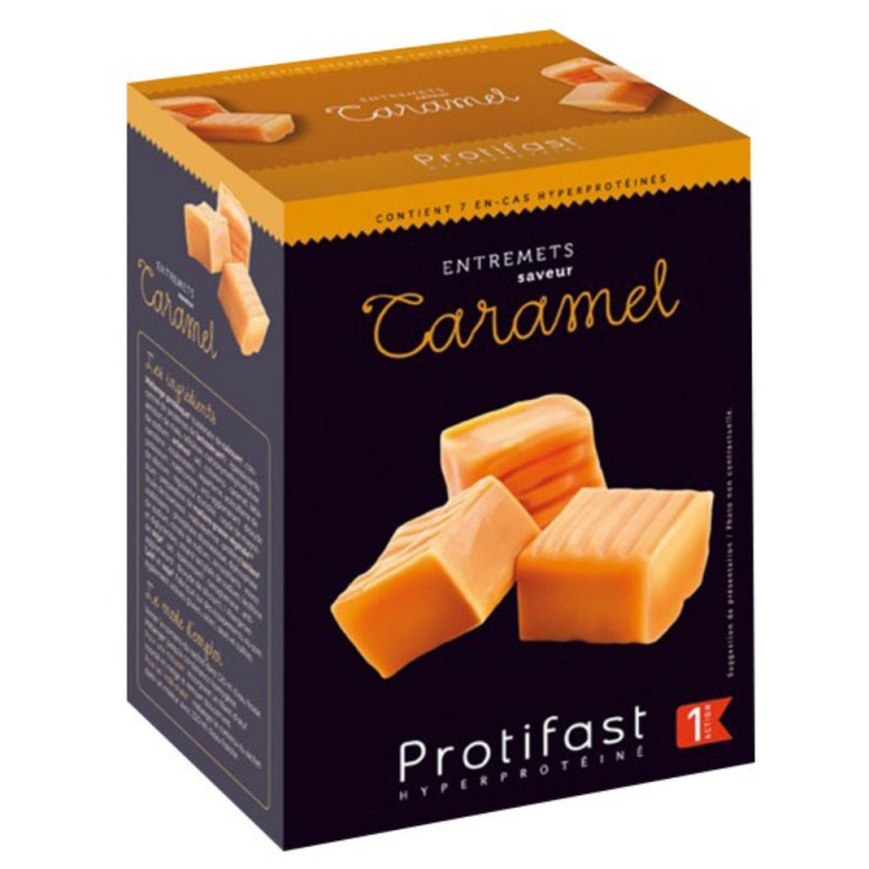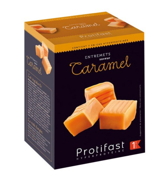 La crème dessert caramel Protifast est une préparation diététique en poudre hypocalorique pour en-cas hyperprotéiné saveur dessert caramel appauvri en glucides et en lipides dont la valeur énergétique est de seulement 81 calories par sachet.
