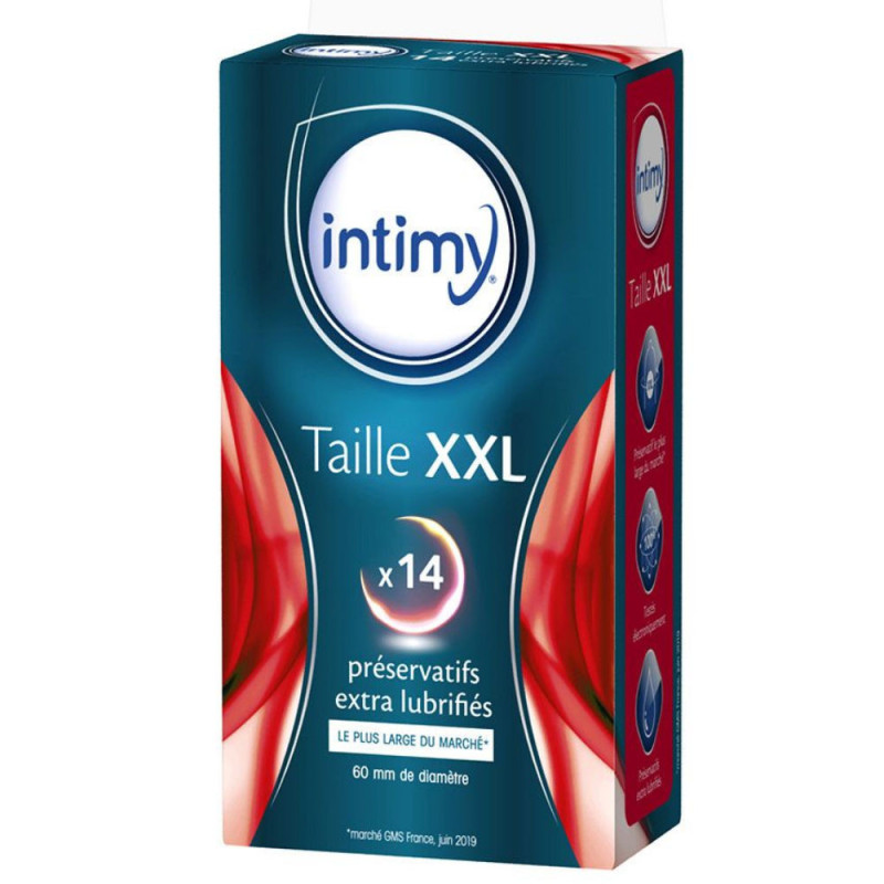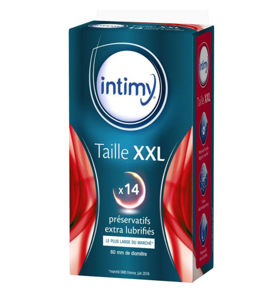 Intimy Taille XXL 14 Préservatifs sont des préservatifs cylindriques extra lubrifiés avec réservoir. D'une largeur nominale de 60 mm, ces préservatifs en latex de caoutchouc naturel sont conçus pour procurer un maximum de confort sans altérer le plaisir.
