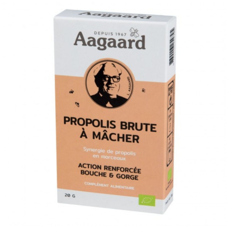 Premier produit mis au point par Aagaard, cette propolis en qualité Propolin® 100 % pure est un véritable concentré de flavonoïdes qui se libèrent au niveau de la bouche par une lente et longue mastication.