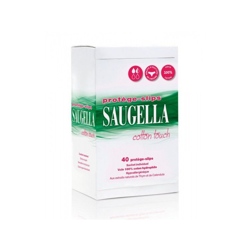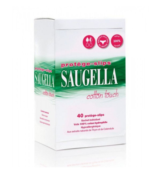 Saugella Cotton Touch 40 Protège-Slips sont hypoallergéniques, dotés d'un voile 100% coton hydrophile et enrichis aux extraits naturels de thym et de calendula pour un confort maximal.