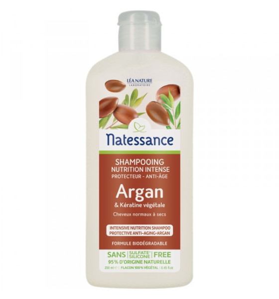 Natessance Shampooing Argan & Kératine Végétale 250 ml à la texture crémeuse nourrissante est un shampooing recommandé pour les cheveux normaux à secs.