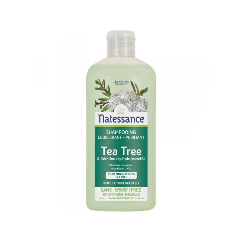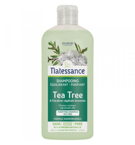 Natessance Shampooing Équilibrant Purifiant Tea Tree 250 ml est un shampooing équilibrant et purifiant formulé à base de tea tree et kératine végétale brevetée.