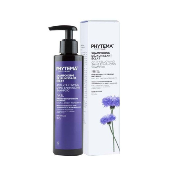 Le shampoing déjaunissant éclat est spécialement formulé pour nettoyer et entretenir les cheveux blancs ainsi que les cheveux blond polaire qui ont jauni, et ce, sans irriter le cuir chevelu. Il est composé d’un puissant complexe anti-oxydant, combinant des procyanidines de raisins noirs et du tocophérol naturel (Vit E).
