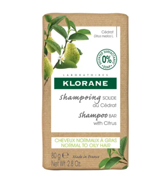 Le Shampooing Solide au Cédrat de Klorane est un soin capillaire sans sulfate conçu pour nettoyer en douceur les cheveux normaux à gras. Sa formule tonifiante assainit le cuir chevelu et régule l'excès de sébum. Les cheveux retrouvent leur vitalité des racines jusqu'aux pointes. Les cheveux sont doux et brillants.