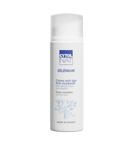 Cytolnat selenium crème de soin dermatologique anti-âge est un soin quotidien à base de sélénium et de vitamines E, C et A. Grâce à cet apport en Sélénium, Cytolnat Sélénium favorise l’activation des glutathions peroxydases, qui grâce à leurs activités anti-radicalaires, vont limiter la dégradation cellulaire au niveau de la peau et donc ralentir le vieillissement cutané.