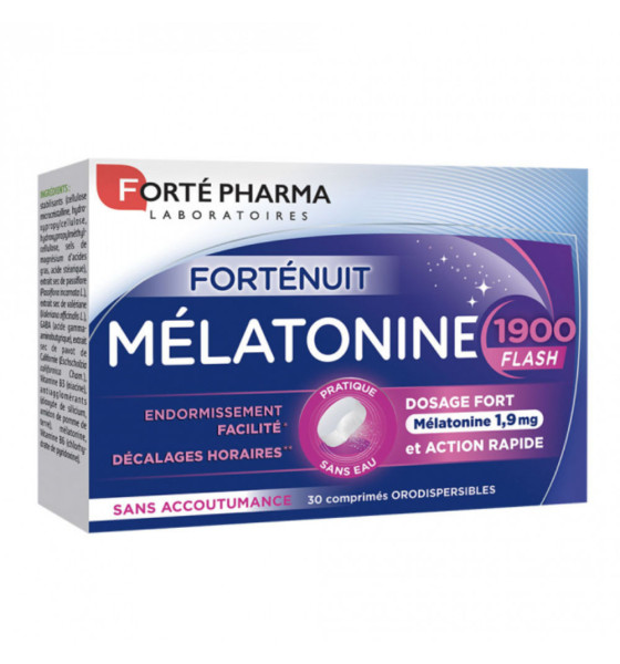 - l'effet du décalage horaire. Forté Nuit Mélatonine 1900 Flash aide à atténuer les effets du décalage horaire.