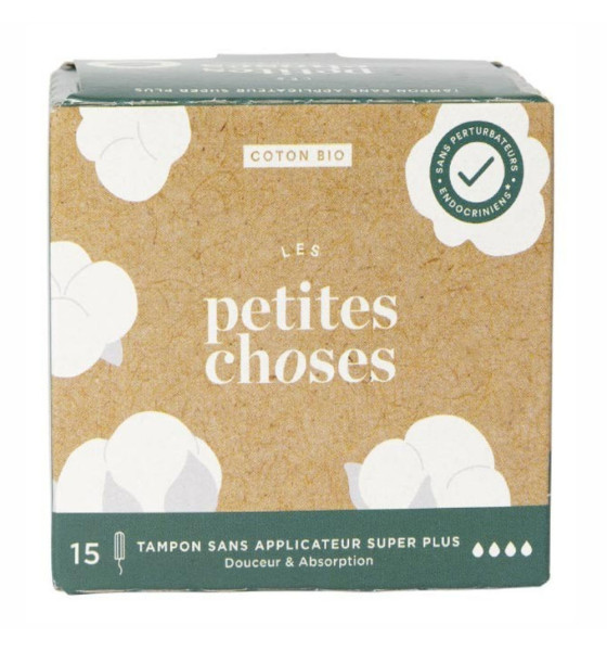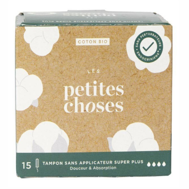 LES PETITES CHOSES proposent des tampons biologiques pour les flux importants Super Plus. Entièrement en coton biologique, optez pour la facilité d'utilisation et le confort absolu avec ces tampons.