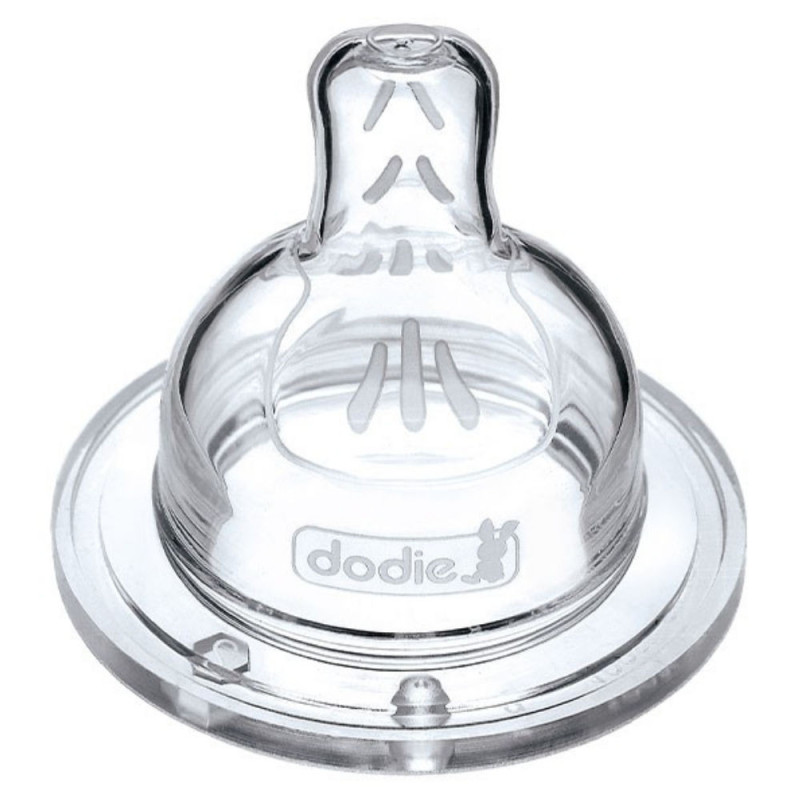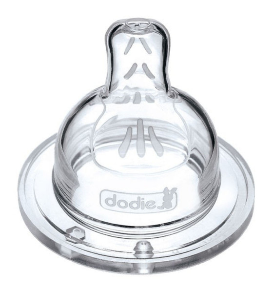 Dodie Sensation+ 2 Tétines Plate Col Large 6 Mois et + Débit 4 Liquide Épais est une tétine à débit adapté aux liquides épais qui reproduit la forme aplatie du sein pendant la tétée.