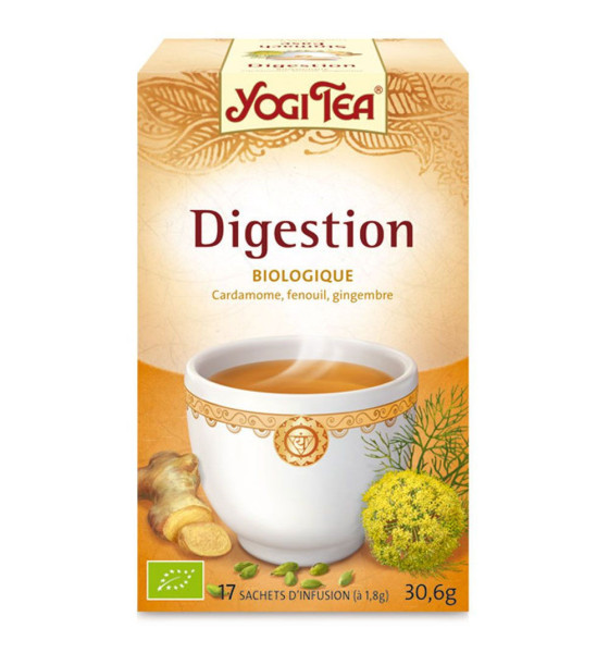 Le YOGI TEA® Digestion est inspiré par la tradition ayurvédique indienne des mélanges masala. Ces mélanges de plantes spéciaux ajoutent une saveur délicieuse et rendent les repas plus digestes. Le YOGI TEA® Digestion combine des plantes comme le fenouil, la réglisse et la menthe poivrée pour faciliter la digestion, tandis que des épices réconfortantes comme la cardamome, la coriandre, le gingembre et le poivre noir en font une infusion délicieuse à déguster avec les repas ou à tout moment de la journée. Le message subtil de cette infusion est : « Une personne est ce qu’elle peut digérer ».