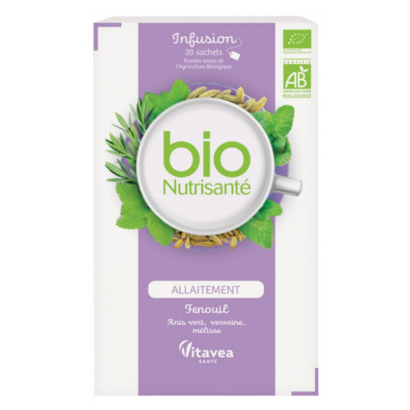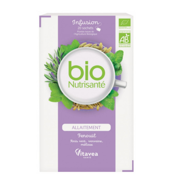 Nutrisanté Infusion Bio Allaitement 20 Sachets est une préparation pour infusion à base de plantes, spécialement élaborée pour les jeunes mamans qui associe :